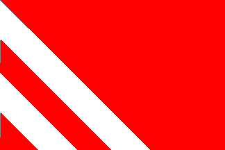 - A diagonal stripe running from the upper hoist corner to the lower fly corner, whose corners may