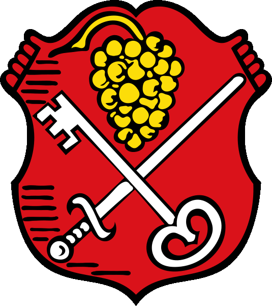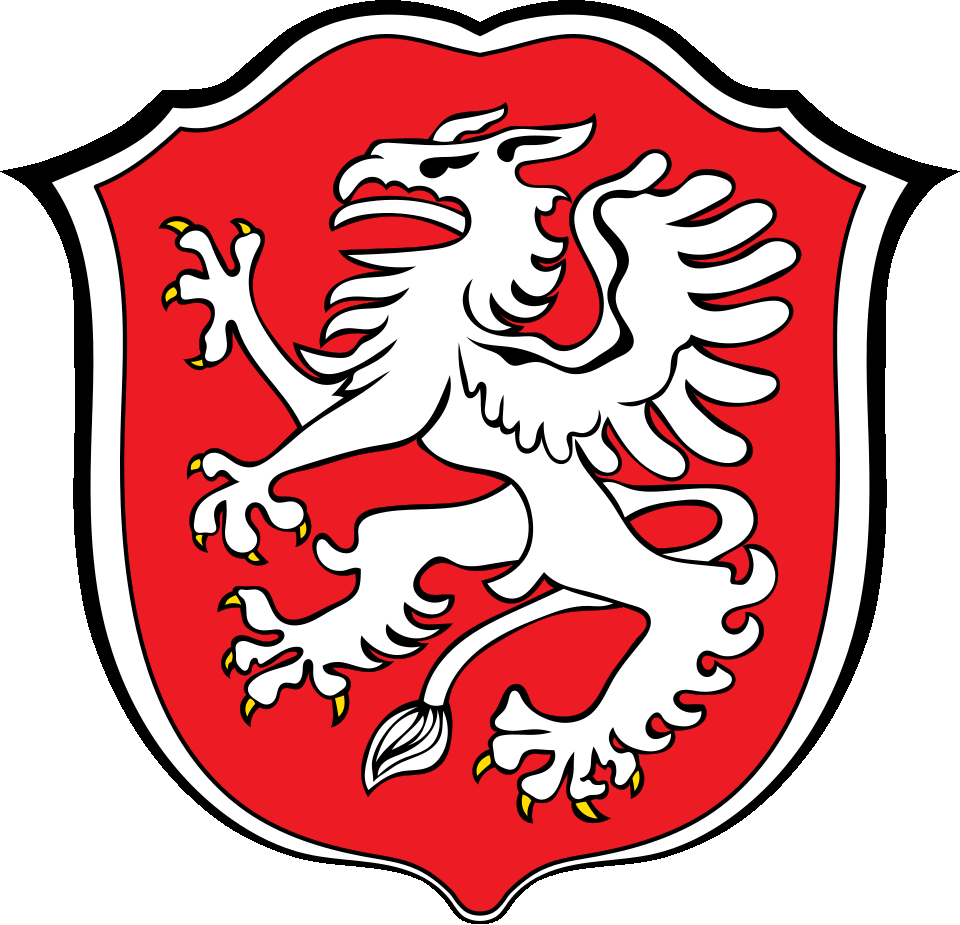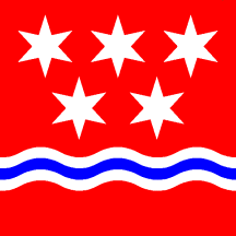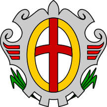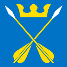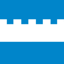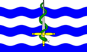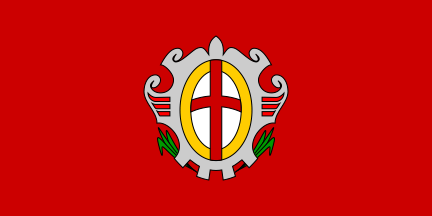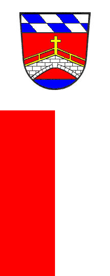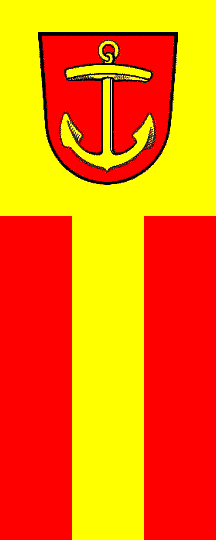 at the head of a hanging flag or a banner and almost invariably bearing a civic or regional coat of
