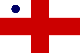 b) The current versions of UK command flags date from regulations of 1898. These regulations reduced the width of the red cross, increased the size of the balls and changed their position on the flag of a rear-admiral (as illustrated below).