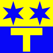 flag, canton or panel, whose arms are generally (but not exclusively) flat-ended but which are wider at