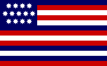 An early (unofficial but used and with a variation in the order of the stripe’s colours – quite widely reproduced) pattern of the stars and stripes – the Serapis flag (see also Betsy Ross flag, continental colours, eagle standard, great star flags, old glory, star-spangled banner and stars and stripes).