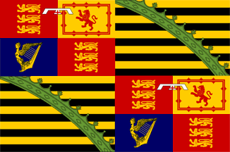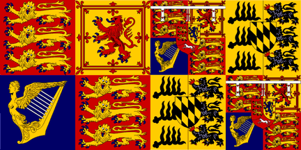 Please note that according to English heraldry the sizes of a great banner were originally as follows: that of an Emperor; six feet square, a King; five feet square. a Prince or Duke; four feet square, a Marquis, Earl, Viscount, Baron, and Knight-baronet; three feet square.
