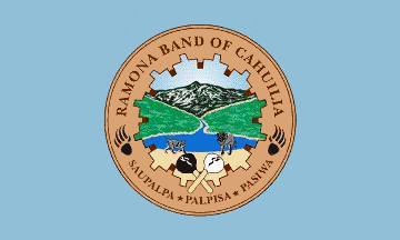 The flag of the Ramona Band of Cahuilla is light blue with tribal logo on it.