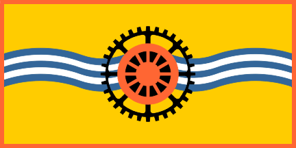 a red wagon-wheel". This flag was a heraldic banner being based on