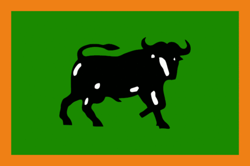 Its flag is green with a black bull which is the emblem of the Army. The green flag is bordered with an orange border all around.